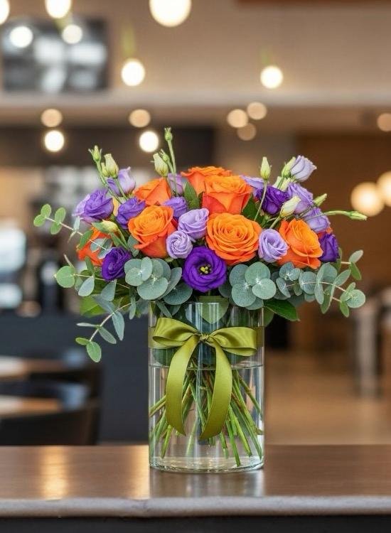 Lisianthus Morados y Rosas Naranjas CDMX